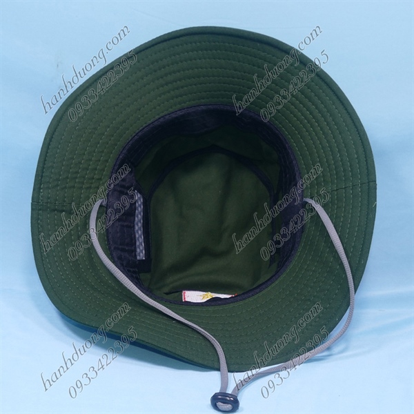 Nón tai bèo lính nam thêu Lá Cờ Việt Nam, có lỗ thông gió bên hông nón – Xanh rêu
