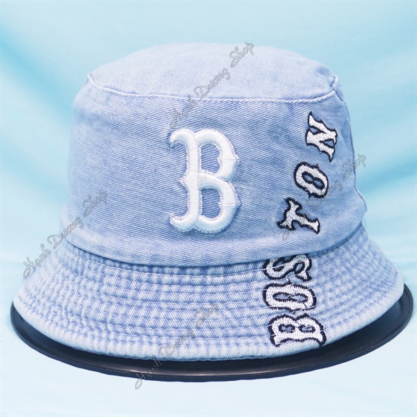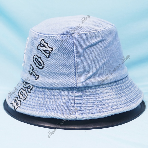 Nón tai bèo vành cụp đội được 2 mặt thêu chữ Boston (B) – Xanh jean