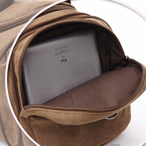 Túi du lịch vải bố có 6 ngăn và 2 ngăn tăng kích thước túi – Kaki đậm